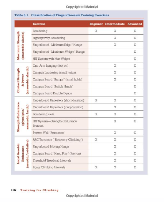 • How to execute and nuance submaximal (volume) climbing to strengthen the local (forearm) aerobic energy system.
